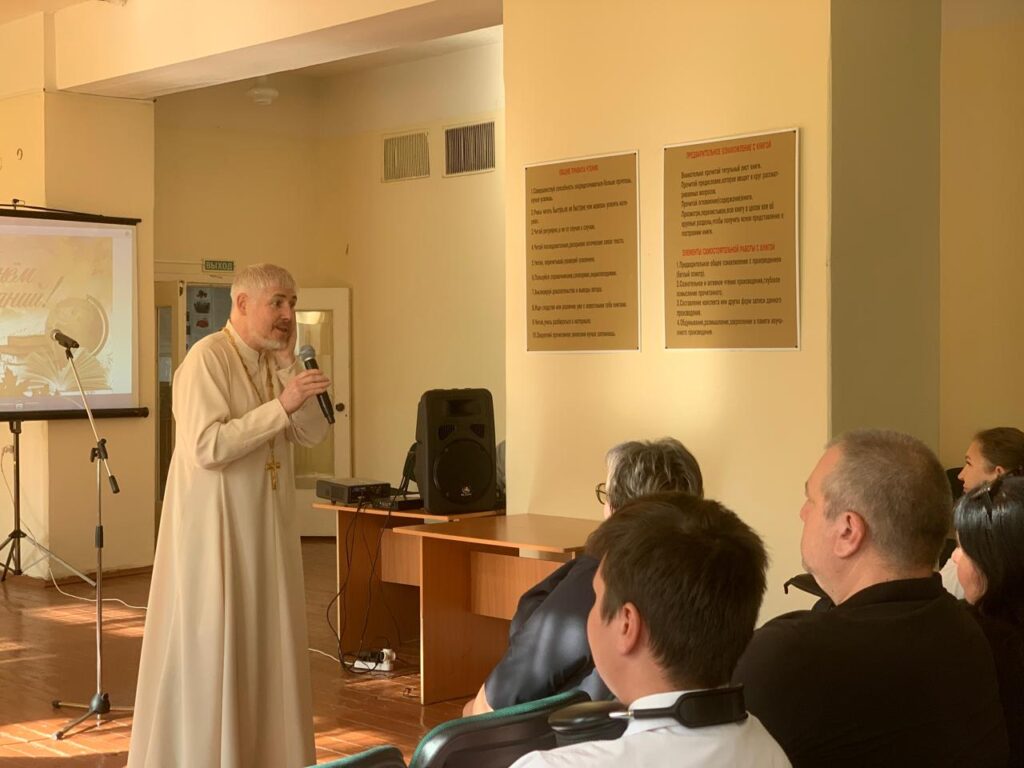 иерей Константин Капустин. Священник рассказал собравшимся о пользе чтения, о важности воспитания в себе способности удивляться красоте сотворённого мира и о необходимости проявлять милосердие в различных жизненных ситуациях. В мероприятии приняло участие 70 человек.